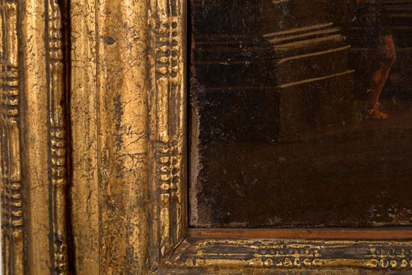 VIVIANO CODAZZI (Attr.) (Valsassina, 1604. Roma, 1672). Dipinto olio su tela raff. ''NOZZE DI CANA''. In cornice dorata. Lievi restauri. Già rintelato e rintelaiato.