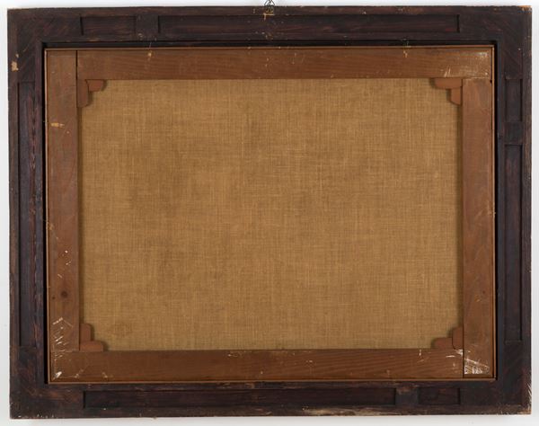VIVIANO CODAZZI (Attr.) (Valsassina, 1604. Roma, 1672). Dipinto olio su tela raff. ''SCORCIO DI PORTO CON MARINA''. In cornice dorata. Difetti e restauri. Già rintelato e rintelaiato.