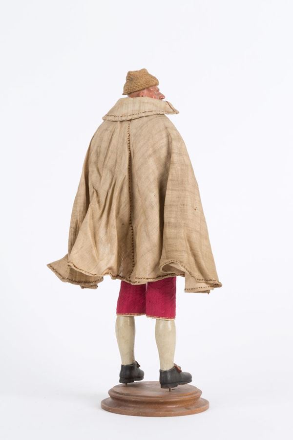 Contadino in terracotta, legno, paglia e vestiti originali. Napoli. XIX secolo.