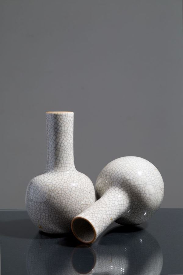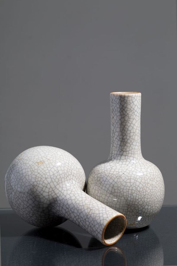 Coppia di vasi in ceramica a cretto. Cina. Fine XIX secolo.
