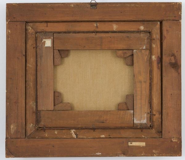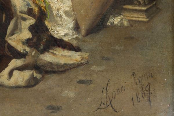 Dipinto olio su tela raff. ''NUDO DI UOMO CHE BEVE''. Firmato L. ROSSI e datato Roma 1869 in basso a destra. In cornice.
