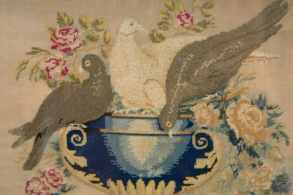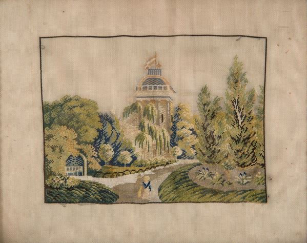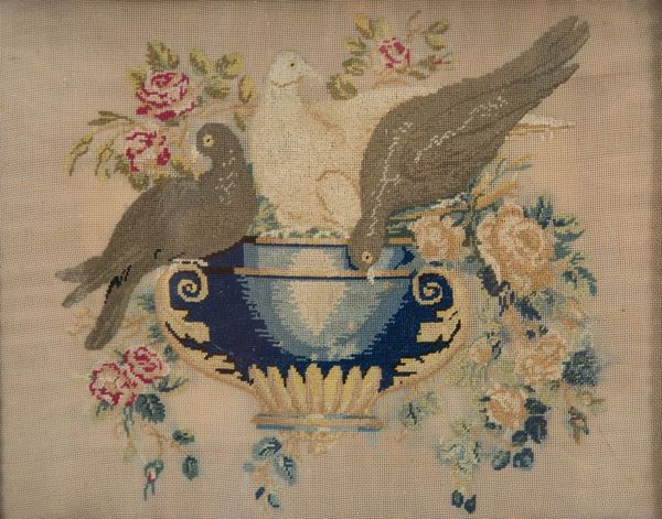Due piccoli punti raff. ''TORRIONE'' e ''COLOMBE''. XIX secolo. In cornici dorate.