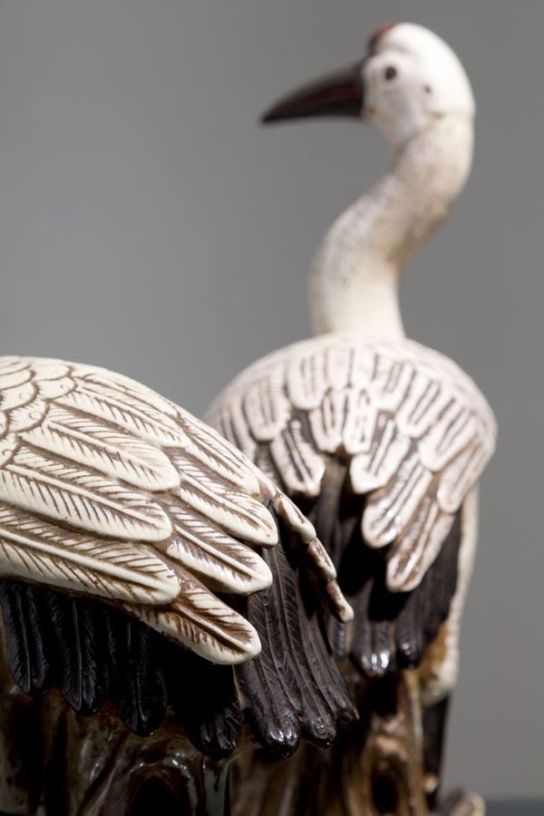 Due sculture in ceramica raff. ''UCCELLI TROPICALI''