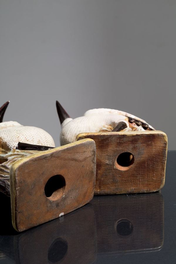 Due sculture in ceramica raff. ''UCCELLI TROPICALI''. Cina. XVIII secolo.