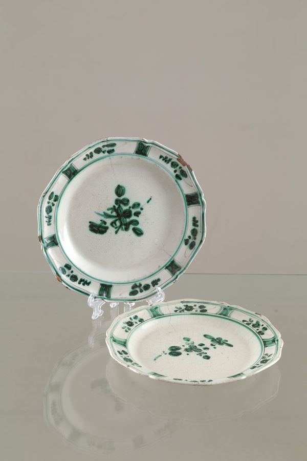 Due vassoi e due piatti in maiolica di Cerreto. XVIII secolo. Lievi difetti. M...