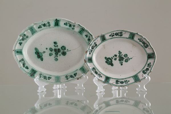 Due vassoi e due piatti in maiolica di Cerreto. XVIII secolo. Lievi difetti.