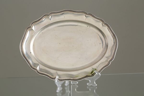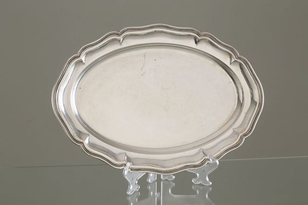 Due vassoi polilobati in argento 800, gr. 2600 ca. complessivi. XX secolo.
