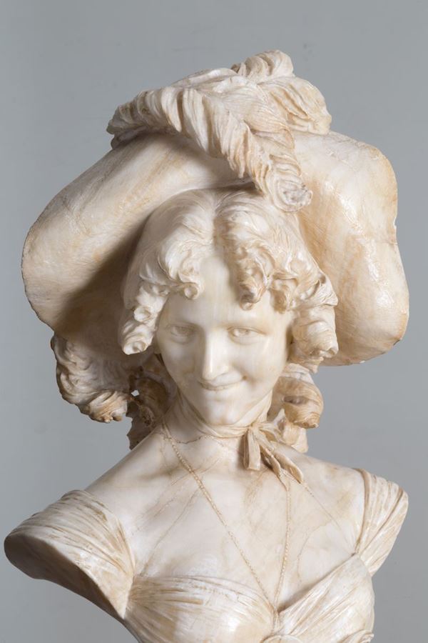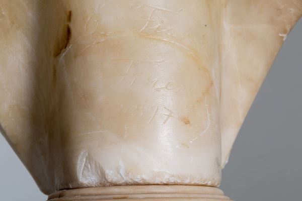 EMILIO FIASCHI (Firenze, 1858-1941). Scultura in alabastro raff. ''BUSTO DI GENTILDONNA''. Firmato e datato 1897 sul retro. Difetti e restauri.