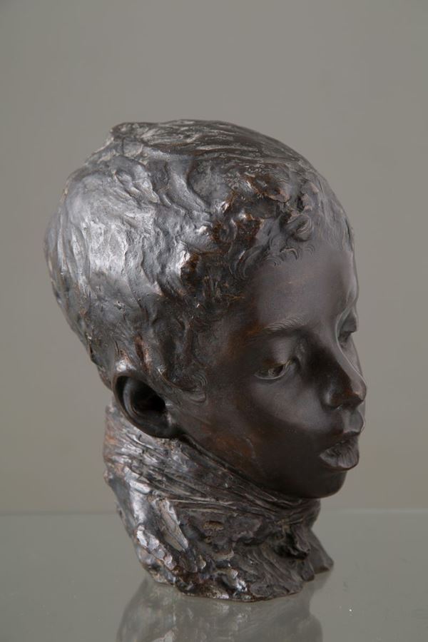 VINCENZO GEMITO (Napoli, 1852-1929). Scultura in bronzo raff. ''TESTA DI BAMBINO''