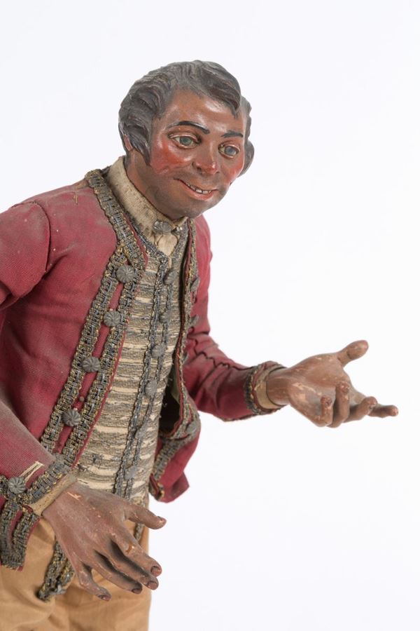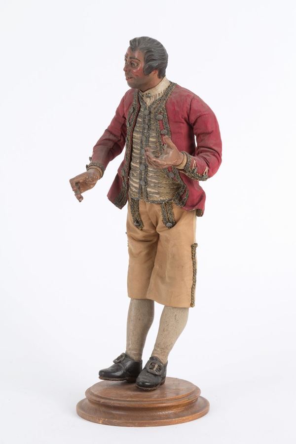 LORENZO MOSCA (Napoli, ? - 1789). Maggiordomo in terracotta, legno, paglia e vestiti originali. Napoli.
