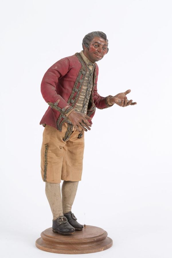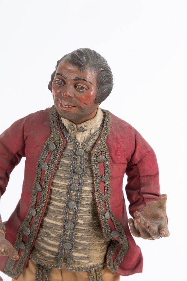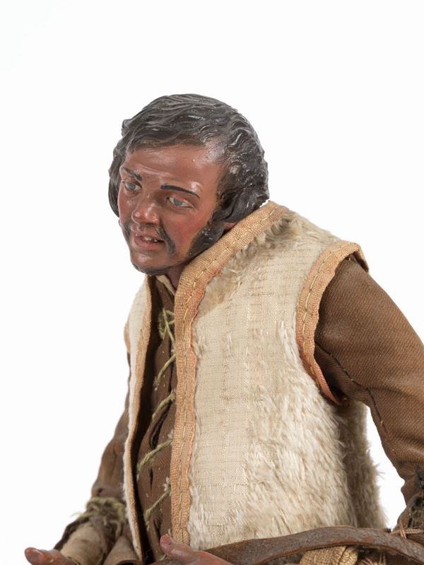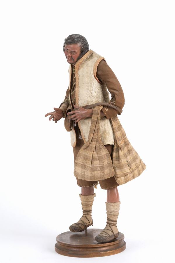 LORENZO MOSCA (Napoli, ? - 1789). Viandante in terracotta, legno, paglia e vestiti originali. Napoli.