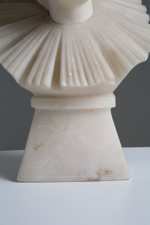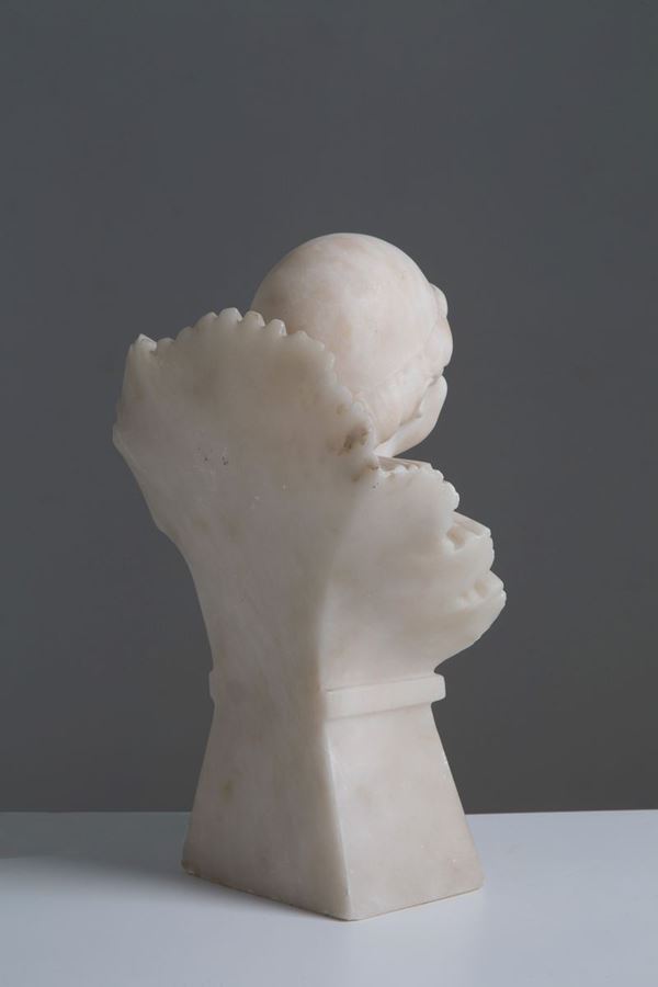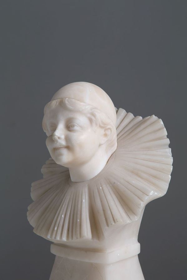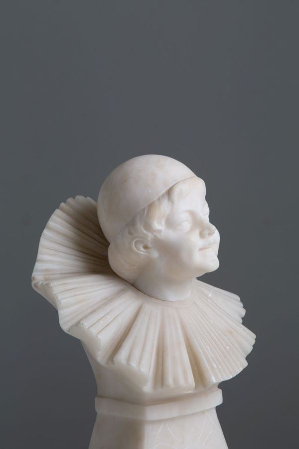 Scultura in alabastro raff. ''PIERROT''. Inizi XX secolo. Lievi difetti....