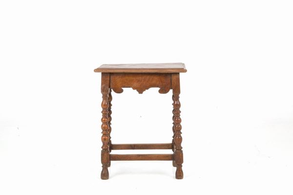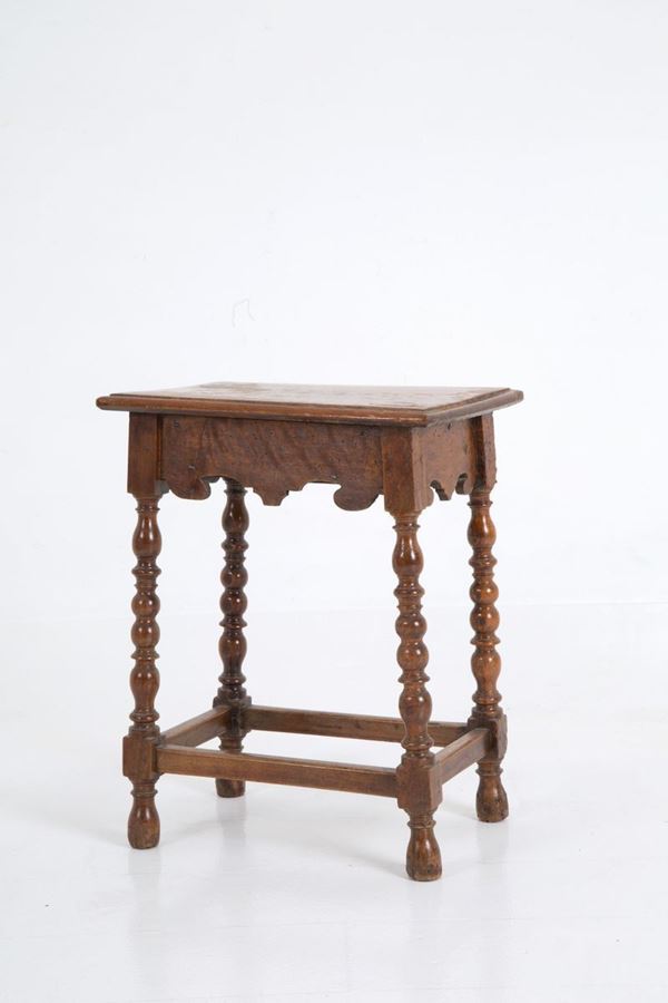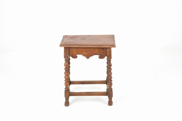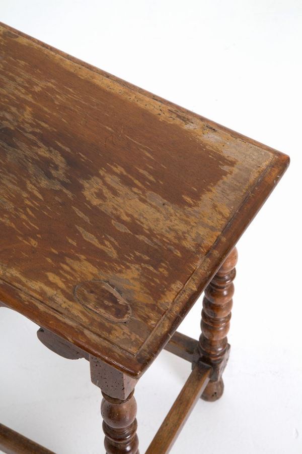 Sgabello in noce con gambe tornite. XVII secolo. Difetti.