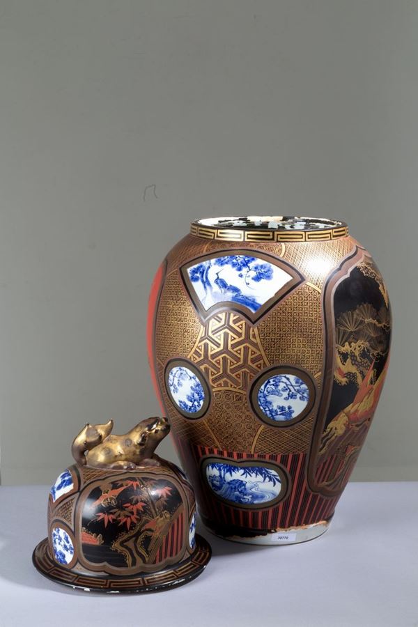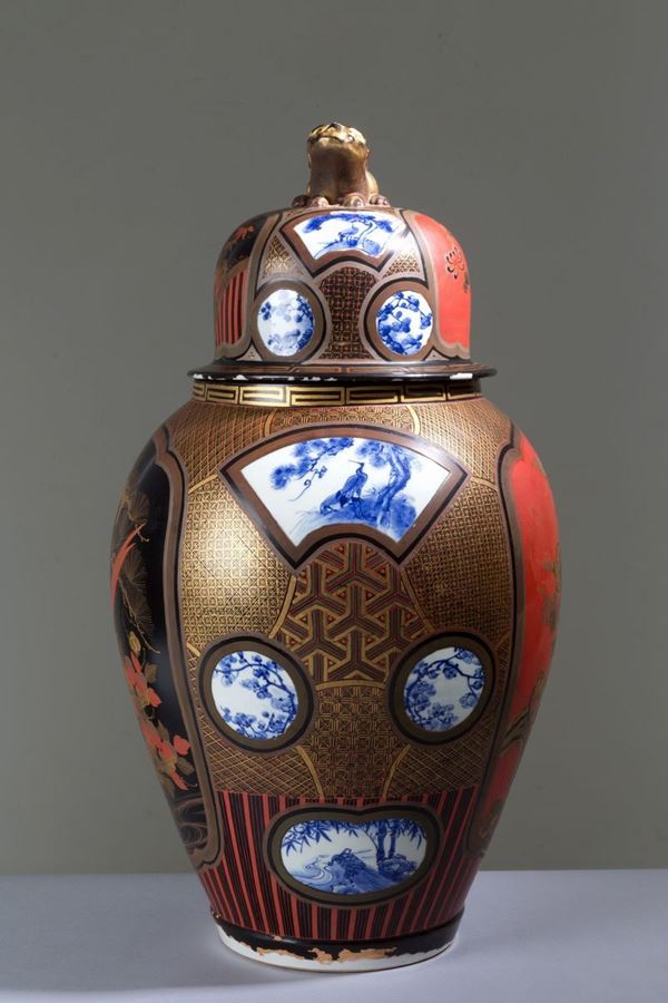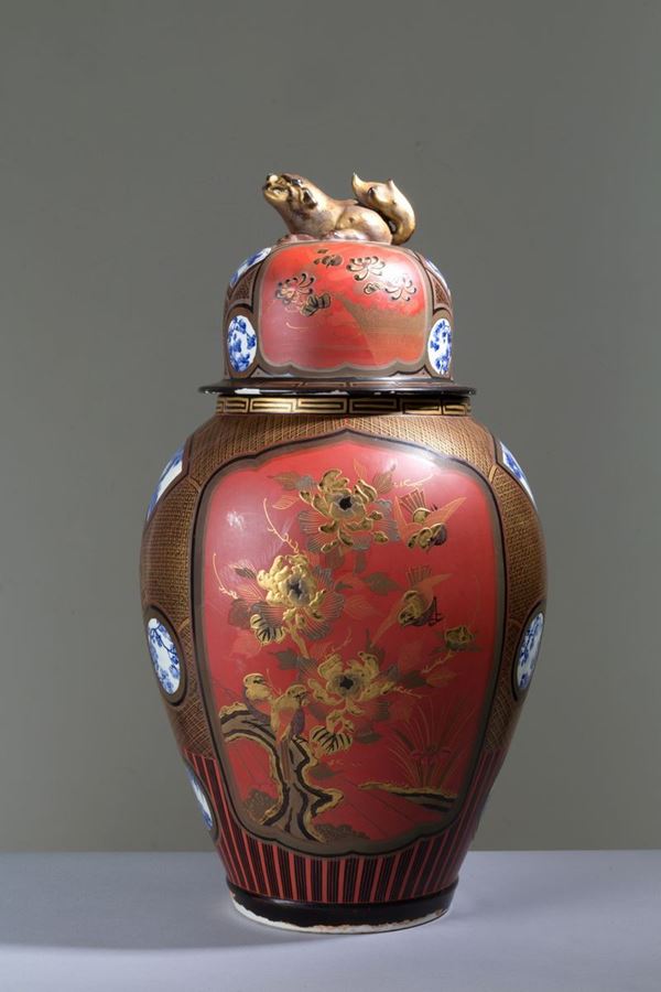Vaso con coperchio in porcellana dipinta. Giappone. XIX secolo. ...