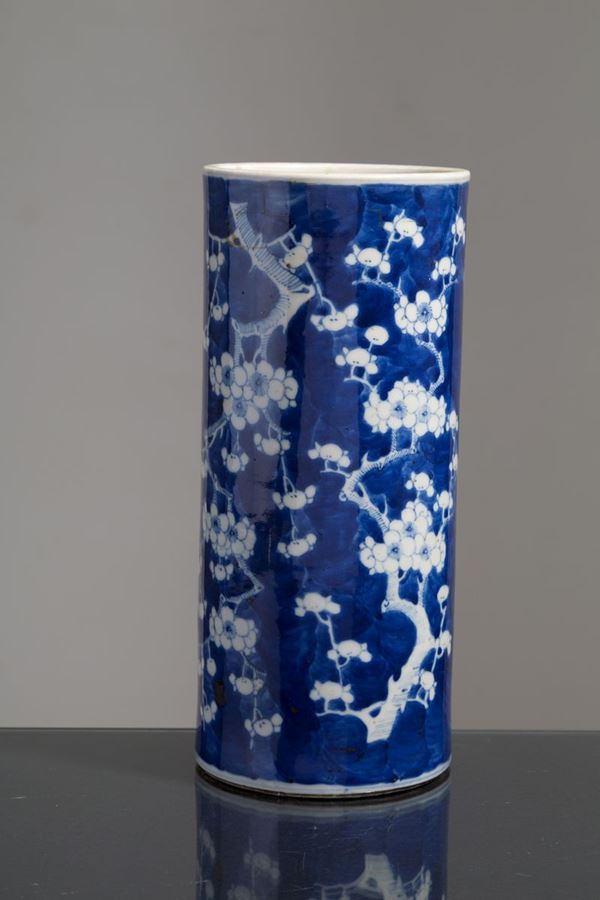 Vaso in porcellana bianca e blu. Cina. Fine XIX secolo.