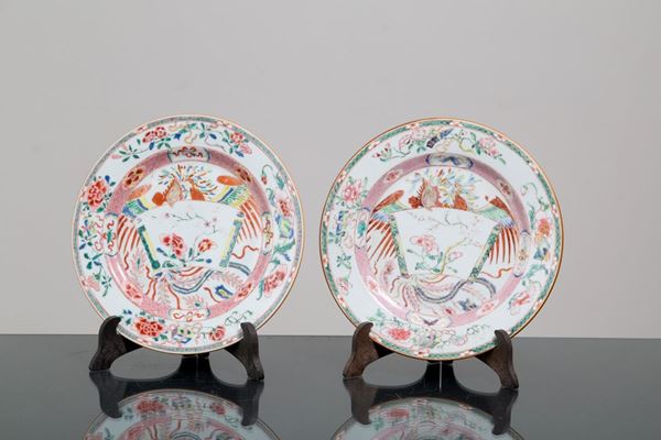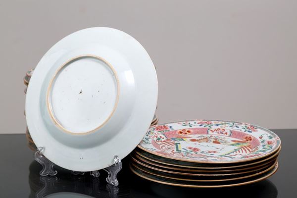 Ventiquattro piatti in porcellana bianca Imari dipinta con soggetti floreali. Giappone. XIX secolo.