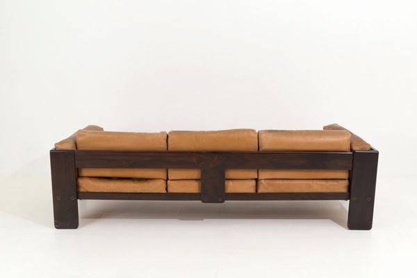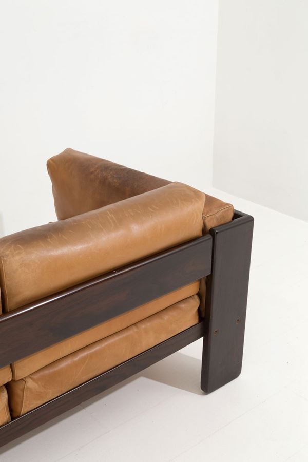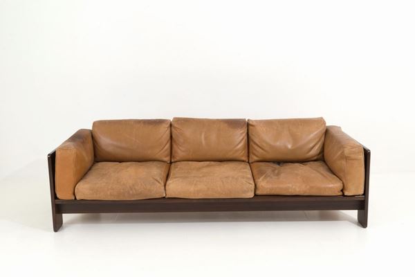 AFRA (Montebelluna, 1937 - Trevignano, 2011) e TOBIA SCARPA (Venezia, 1935) per GAVINA. Divano Bastiano con struttura in legno con rivestimento e cuscini in pelle marrone. Anni '60.