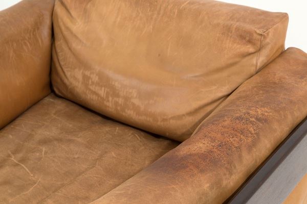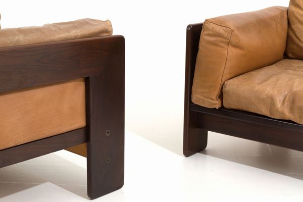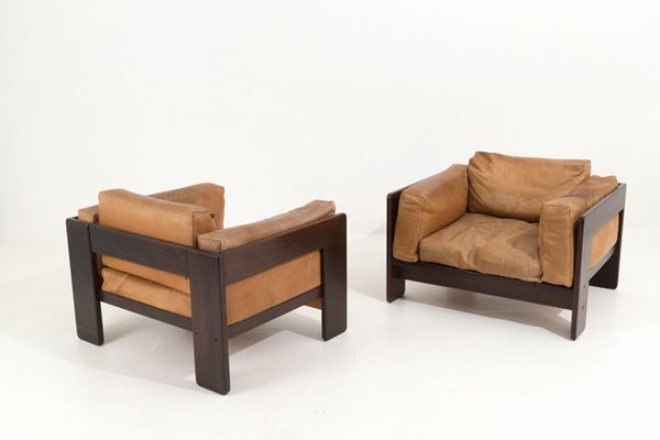 AFRA (Montebelluna, 1937 - Trevignano, 2011) e TOBIA SCARPA (Venezia, 1935) per GAVINA. Coppia di poltrone Bastiano con struttura in legno con rivestimento e cuscini in pelle. Anni '60.