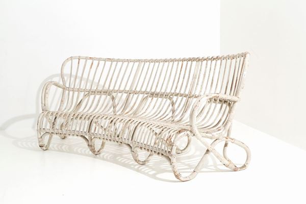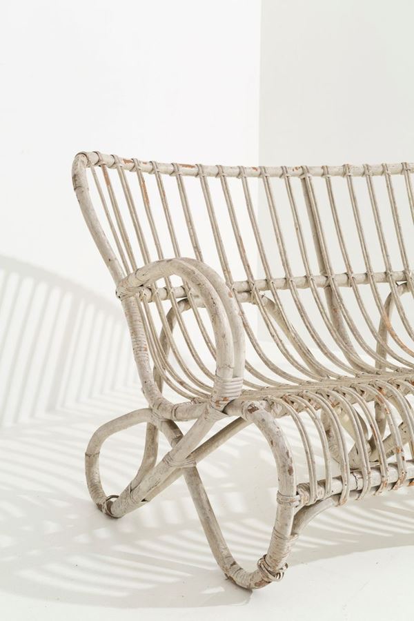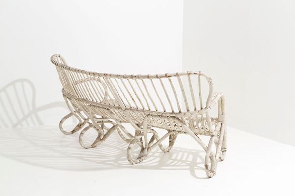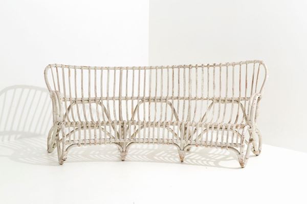 FRANCO ALBINI (Attr.) (Robbiate, 1905 - Milano, 1977) per BONACINA (Attr.). Divano in giunco. Anni '60. Difetti.