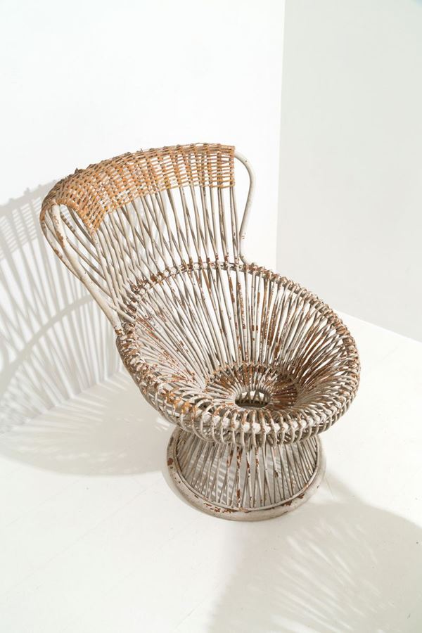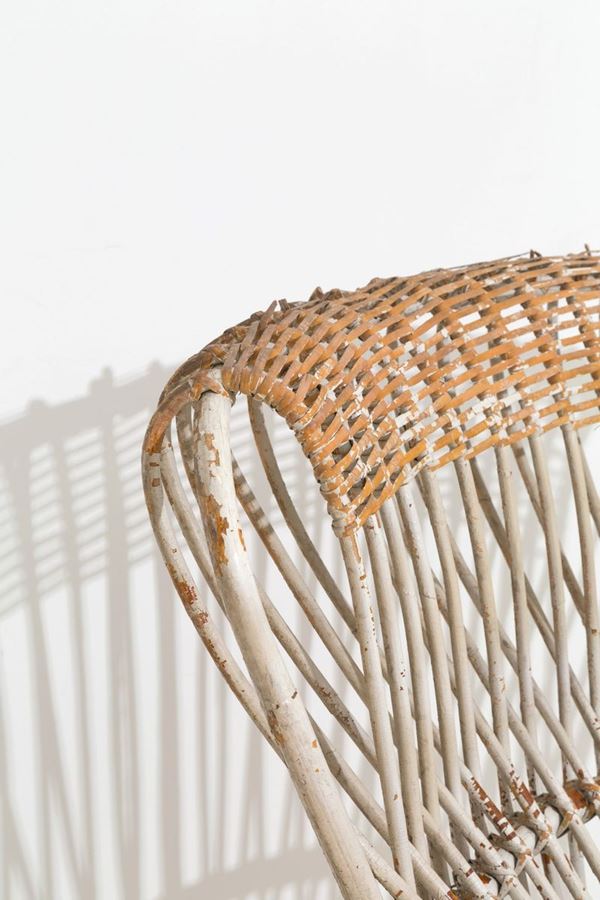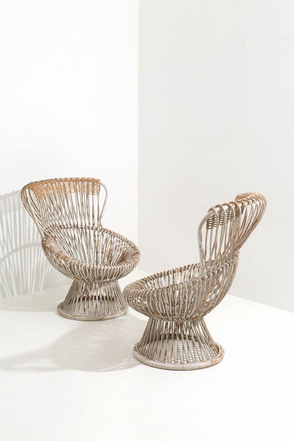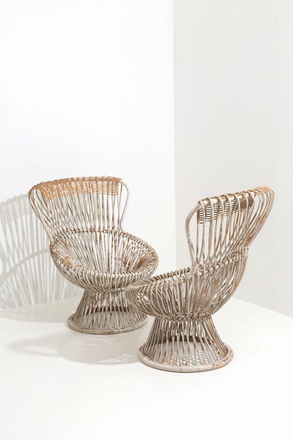 FRANCO ALBINI (Robbiate, 1905 - Milano, 1977) per BONACINA. Coppia di poltrone Margherita in giunco. Anni '60. Difetti.