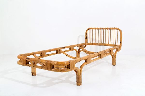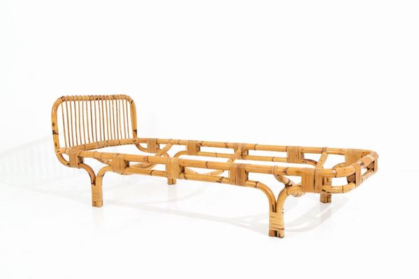 FRANCO ALBINI (Attr.) (Robbiate, 1905 - Milano, 1977) e FRANCA HELG (Attr.) (Milano, 1920 - Milano, 1989). Letto singolo in rattan. Anni '50.