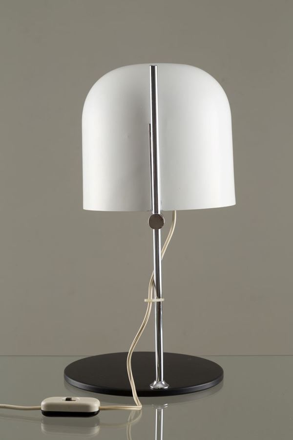 ANGELO OSTUNI per OLUCE. Lampada da tavolo in acciaio e metallo verniciato bian...