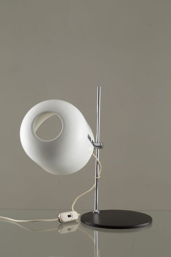 ANGELO OSTUNI per OLUCE. Lampada da tavolo in acciaio e metallo verniciato bianco e nero. Anni '70.