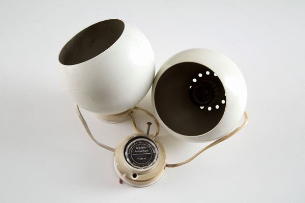 Cinque lampade sferiche in metallo a calamita. Produzione REGGIANI. Con etichetta del produttore. Anni '60-'70.