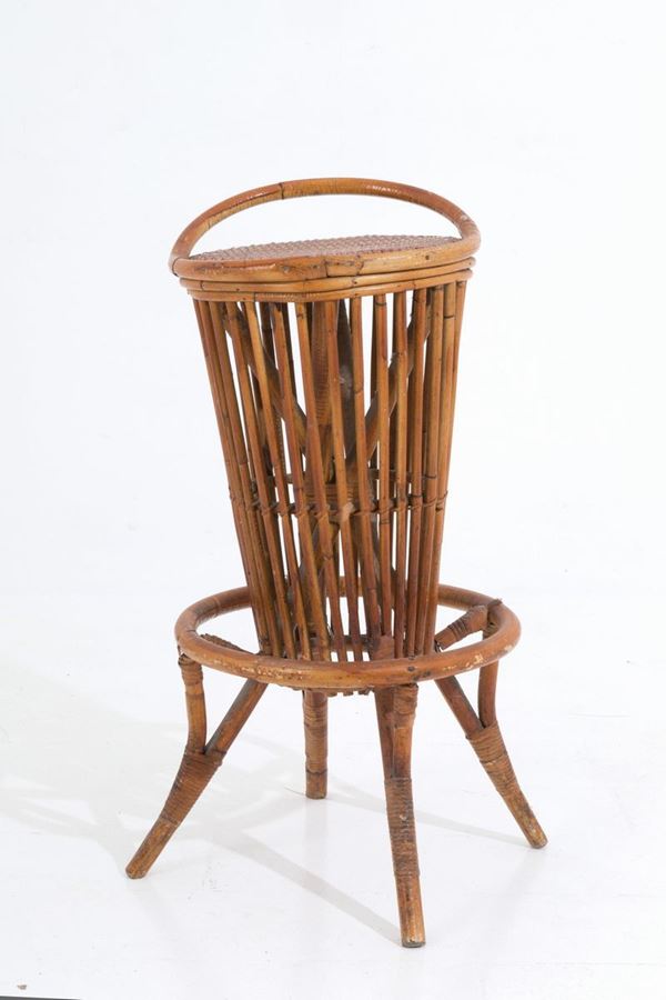 Due sgabelli alti in rattan. Manifattura italiana. Anni '50. Difetti. ...