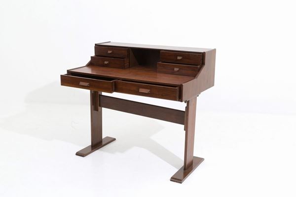GIANFRANCO FRATTINI (Attr.) (Padova, 1926 - Milano, 2004).Scrittoio con sei cassetti in legno. Anni '60.