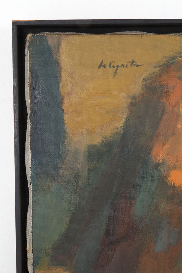 GIOVANNI LA COGNATA (Comiso, 1954). Dipinto olio su tela raff. ''SOGGETTO INFOR...