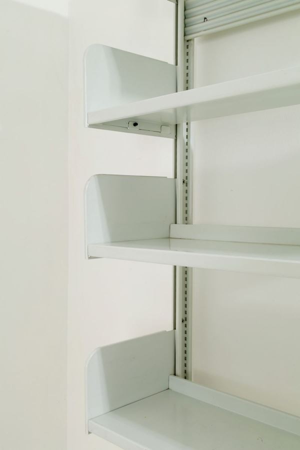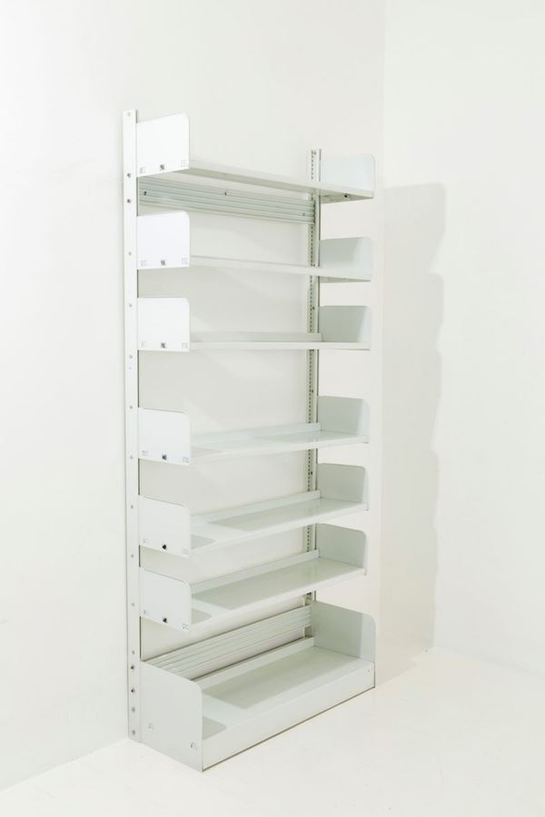 Libreria Congresso in metallo verniciato bianco a cinque elementi. Produzione LIPS VAGO. Anni '60. Difetti.