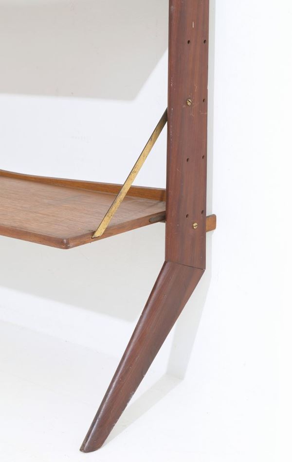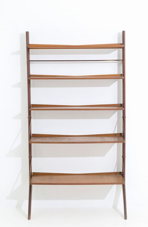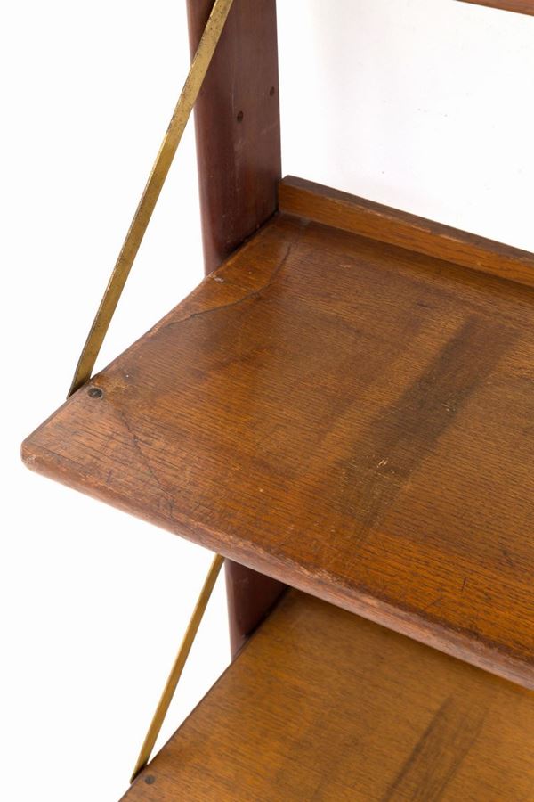 Libreria in legno e ottone a cinque ripiani. Anni '60.