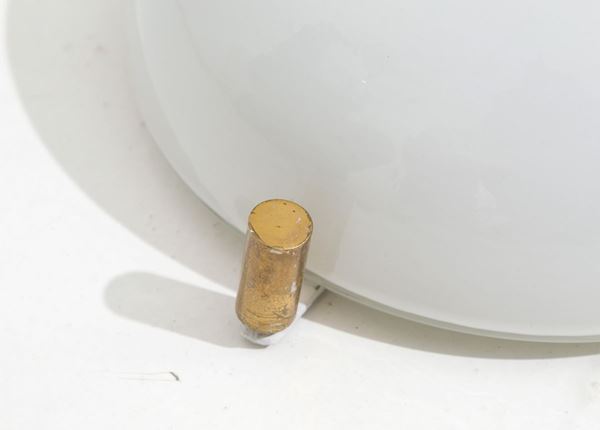 VICO MAGISTRETTI (Milano, 1920-2006) per ARTEMIDE. Coppia di applique Mania in metallo verniciato e vetro bianco. Con etichetta del produttore. Anni '70. Segni d'usura del tempo.