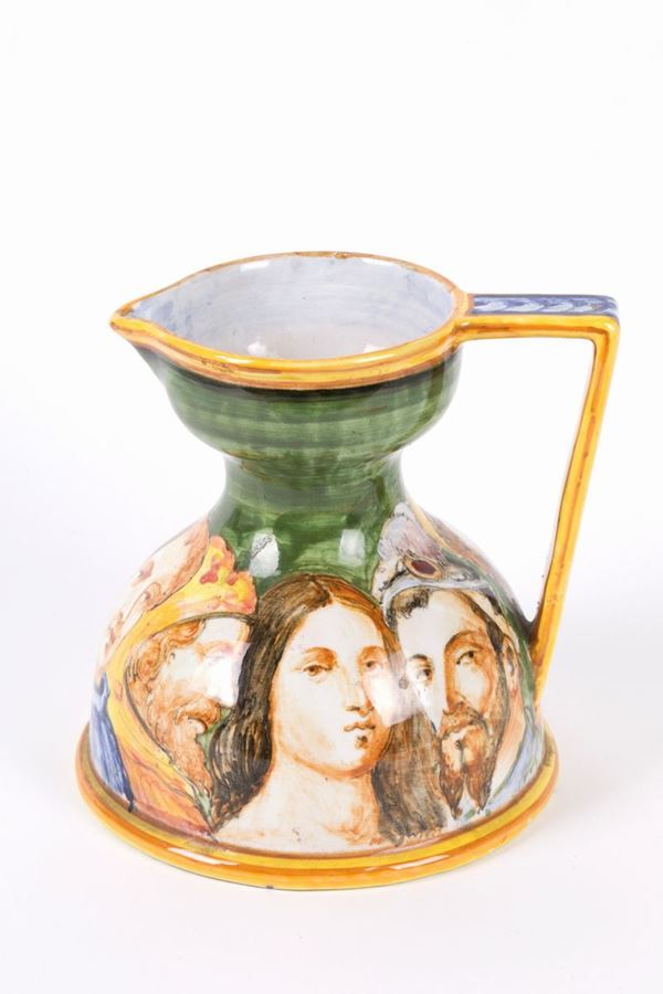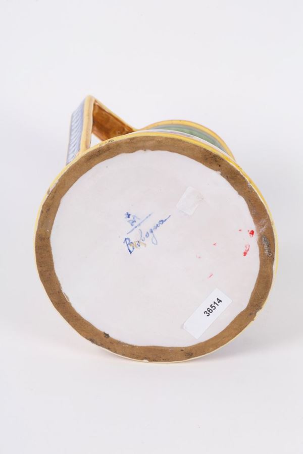 ANGELO MINGHETTI (Bologna, 1821-1885). Vaso in ceramica con volti. Marcato sul fondo M., BOLOGNA.