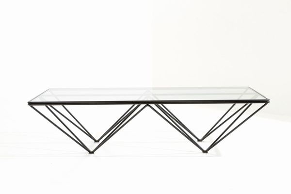 PAOLO PIVA per B&B ITALIA. Tavolino Alanda in metallo verniciato nero con piano in vetro. 1984.