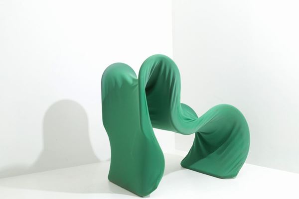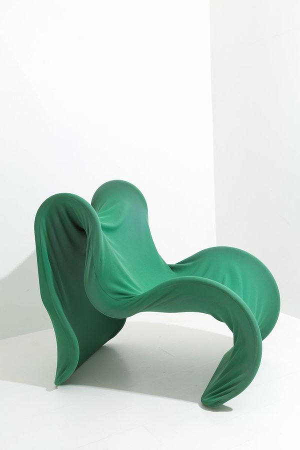 GIANNI PARESCHI (Milano, 1940-2017) per BUSNELLI. Poltrona Fiocco in tubolare di metallo e tessuto elasticizzato verde. Anni '80.