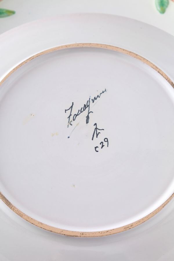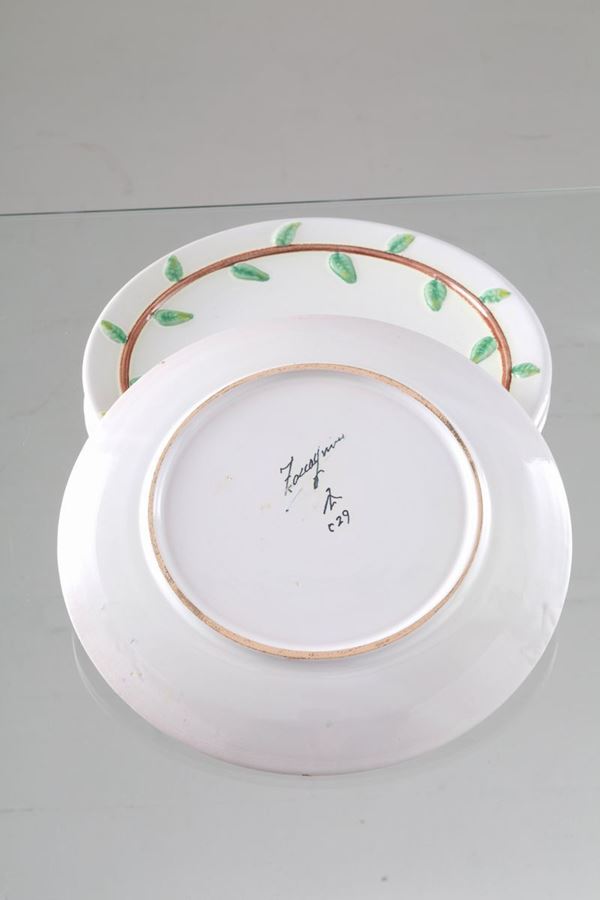 Quattro piatti in ceramica. Manifattura ZACCAGNINI. Marcati sul fondo. XX secol...
