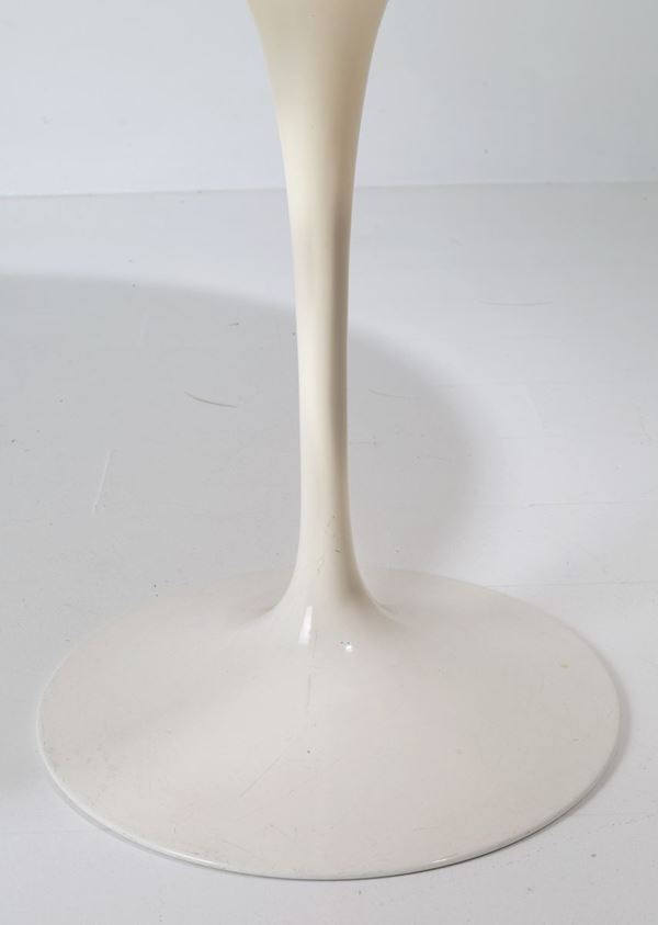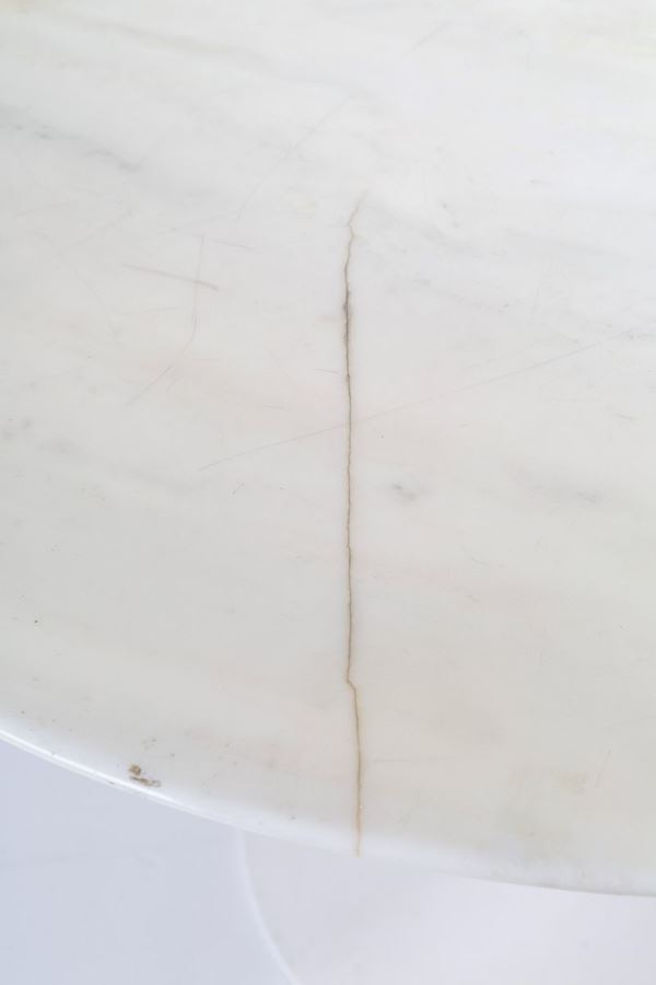 EERO SAARINEN (Kirkkonummi, 1910 - Ann Arbor, 1961). Tavolo Tulip con piede in legno laccato bianco e piano in marmo. Manifattura sconosciuta. Anni '60. Difetti e felatura sul piano.