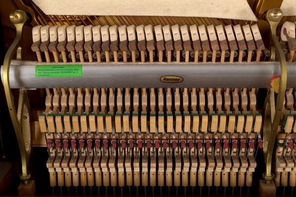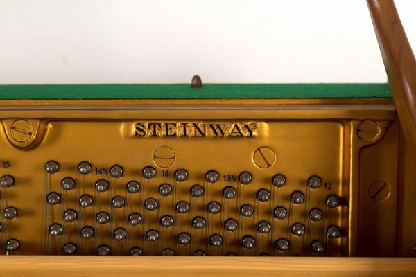 STEINWAY & SONS. Pianoforte verticale in legno chiaro. Anni '70.