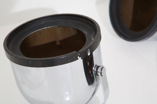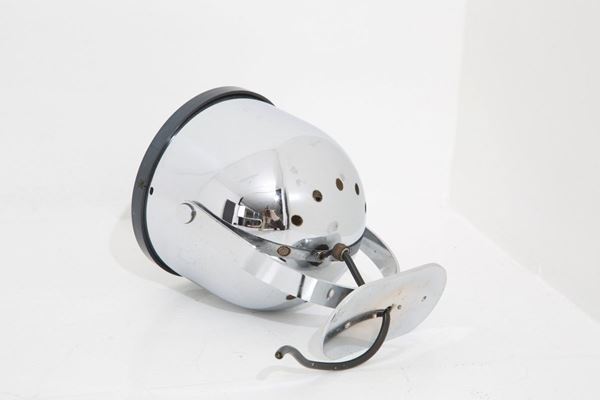 Tre faretti in acciaio e plastica. Manifattura italiana. Anni '70.