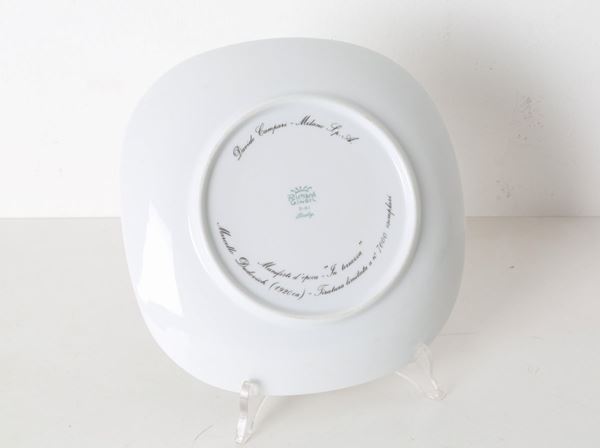 Tre piatti in porcellana raff. ''MANIFESTI D'EPOCA''. Serie Davide Campari Milano SPA. Manifattura RICHARD GINORI. Anni '20.