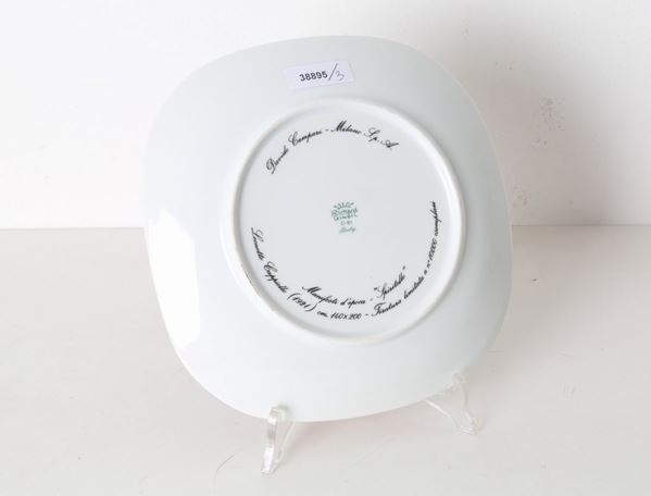 Tre piatti in porcellana raff. ''MANIFESTI D'EPOCA''. Serie Davide Campari Mila...