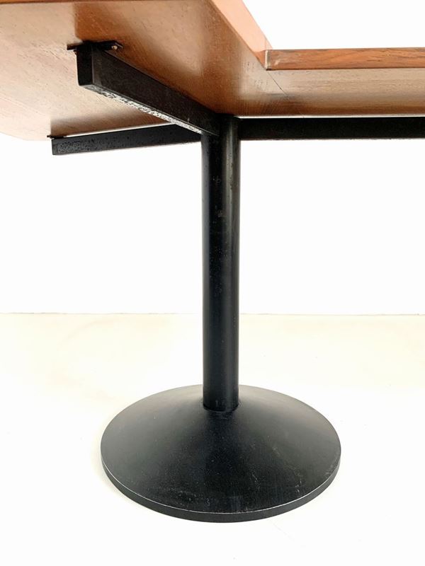 Scrivania Stadera mod. 840 in teak, acciaio e alluminio. 1958. Pubblicata in G. Gramigna - S. Mazza, Repertorio del design italiano 1950-1985, Mondadori, Milano 1985, p. 123, in Domus, luglio 1991, n. 729 e in I. De Guttry e M. P.Maino, Produzione POGGI PAVIA. Il mobile italiano degli anni '40 e '50, Laterza, Roma 1992, pp. 59 e 123.