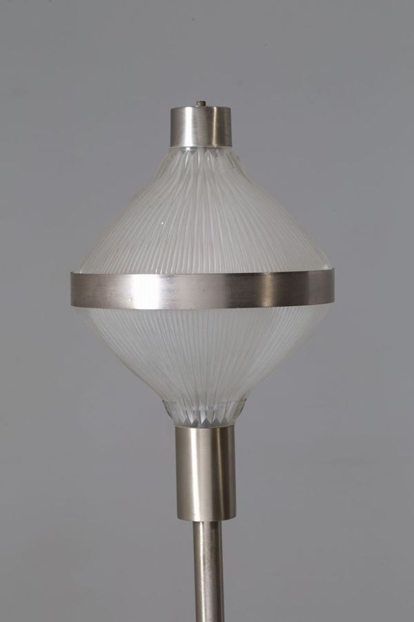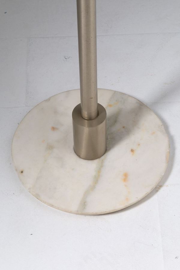 Lampada da terra in acciaio cromato e satinato con base in marmo. Anni '60. Segni di usura.