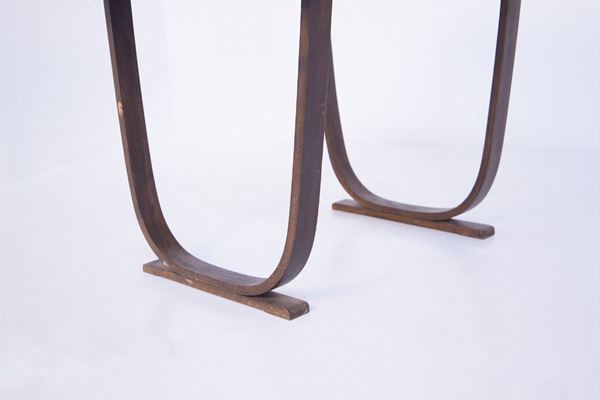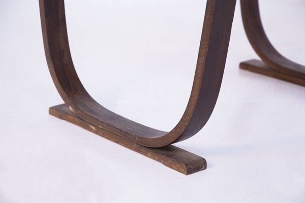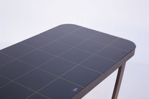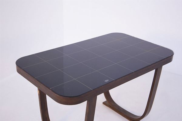 Tavolino in noce e vetro opalino. Anni '50. Lievi difetti.