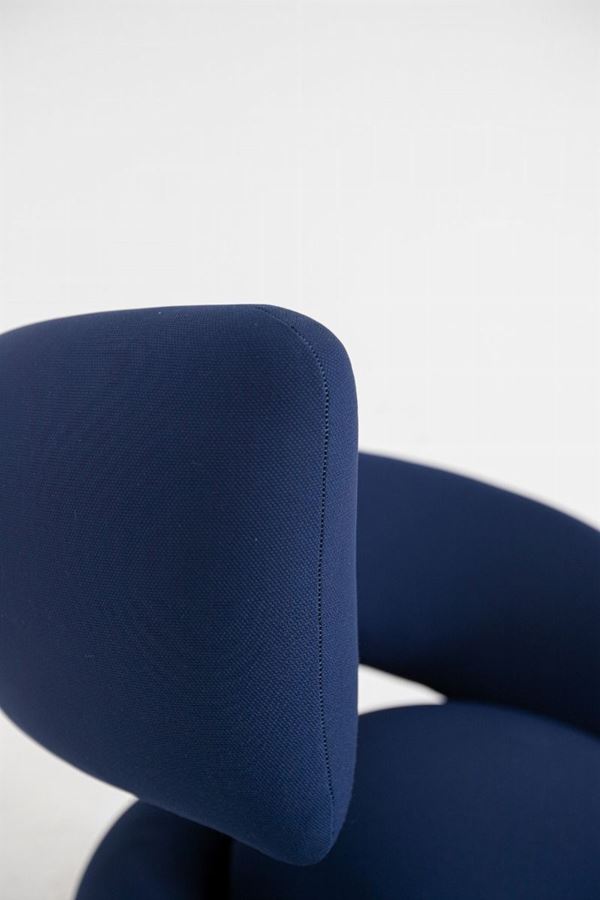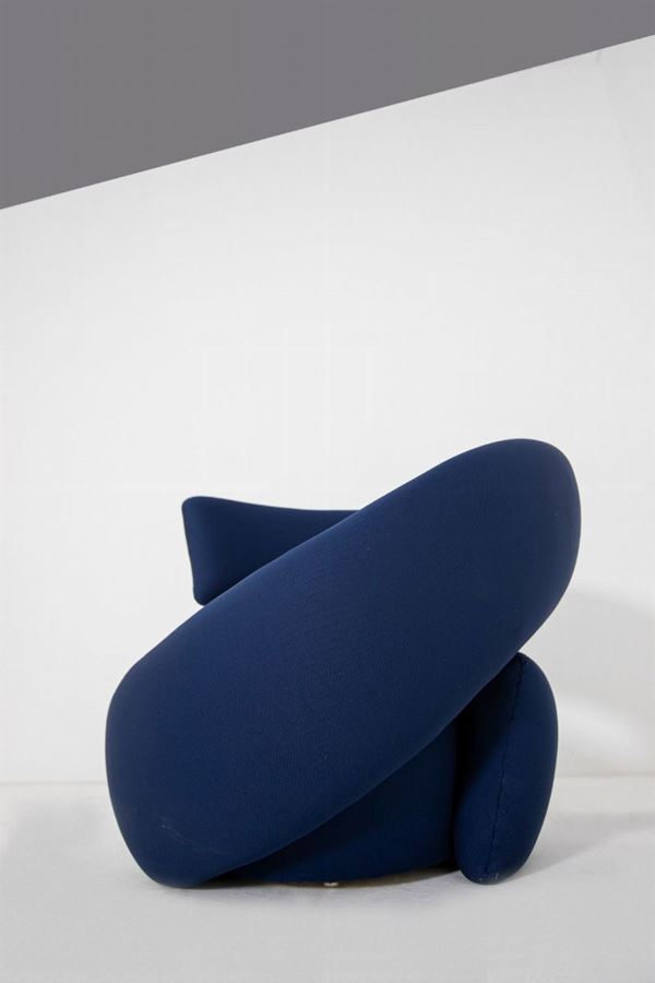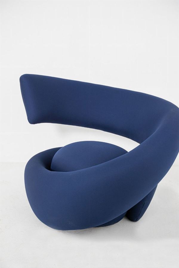 Rara poltrona a spirale in ferro e tessuto. Produzione STUDIO MOST. Anni '70.