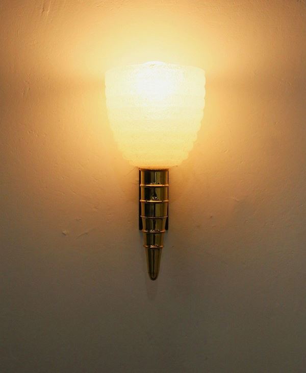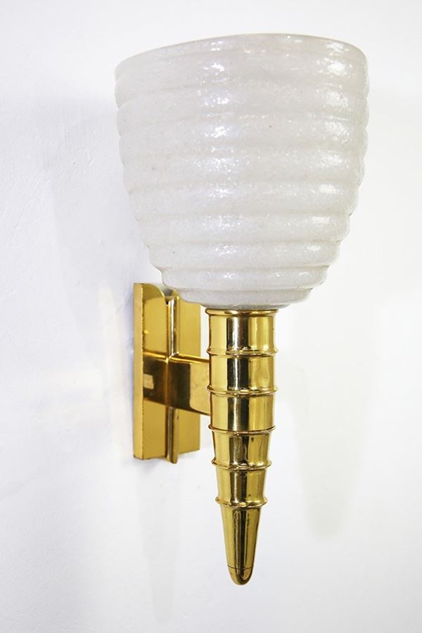Coppia di applique in vetro pulegoso e ottone. Produzione BAROVIER & TOSO. Anni '60. Condizioni originali.