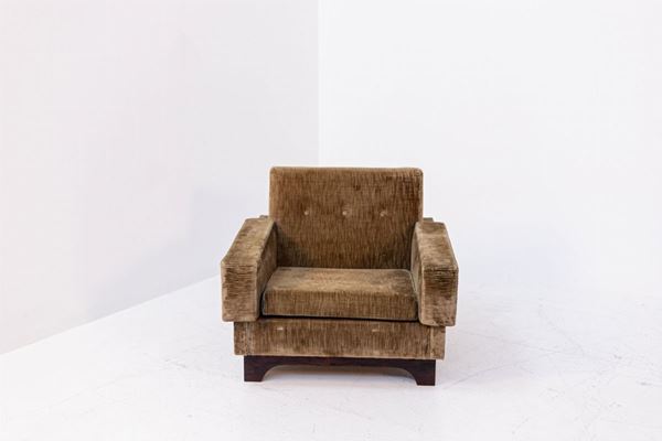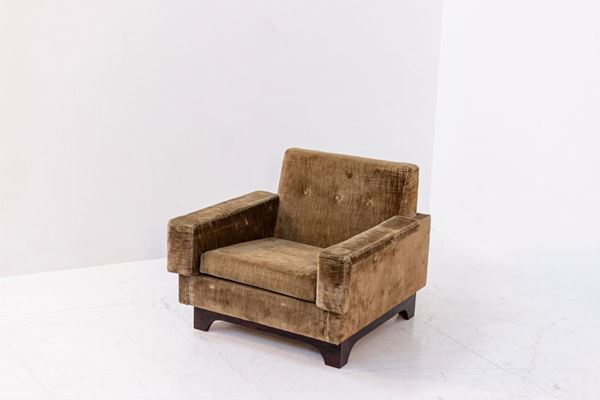 Coppia di poltrone in legno e velluto. Produzione SAPORITI ITALIA. Anni '60. Condizioni originali.Altezza della seduta cm. 36 ca.