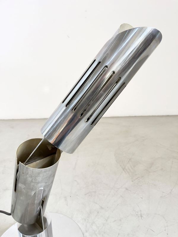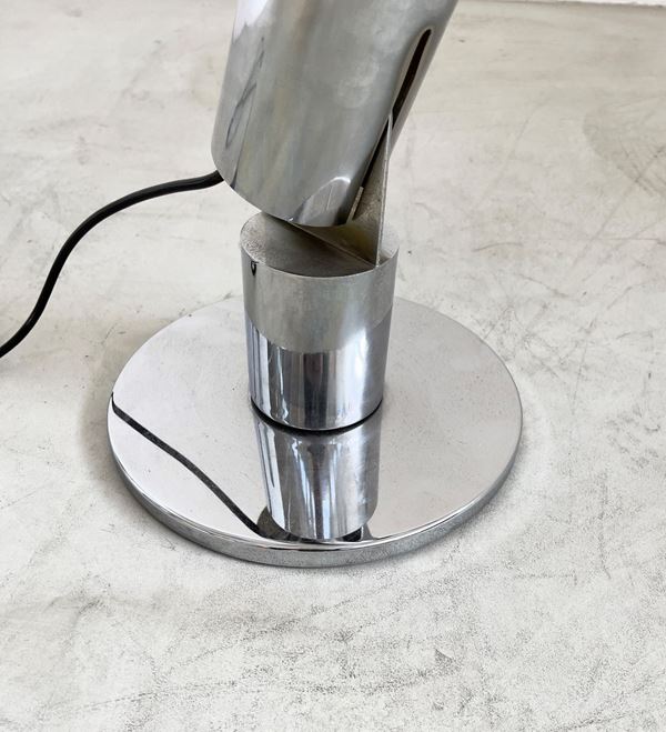 Lampada da terra Cobra in metallo cromato. Produzione FRANCESCONI. 1970.